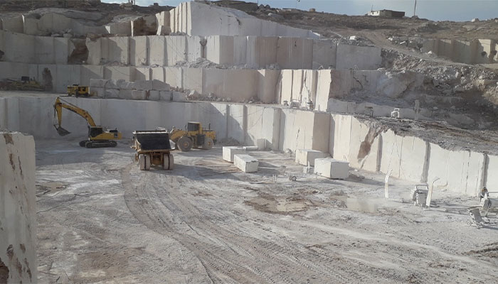 نوع سنگ این معدن مرمریت است که در رنگ های کرم نوارقلبی، طوسی، کالباسی،کرم روشن با رگه هایی به رنگ گلبهی موجود است.